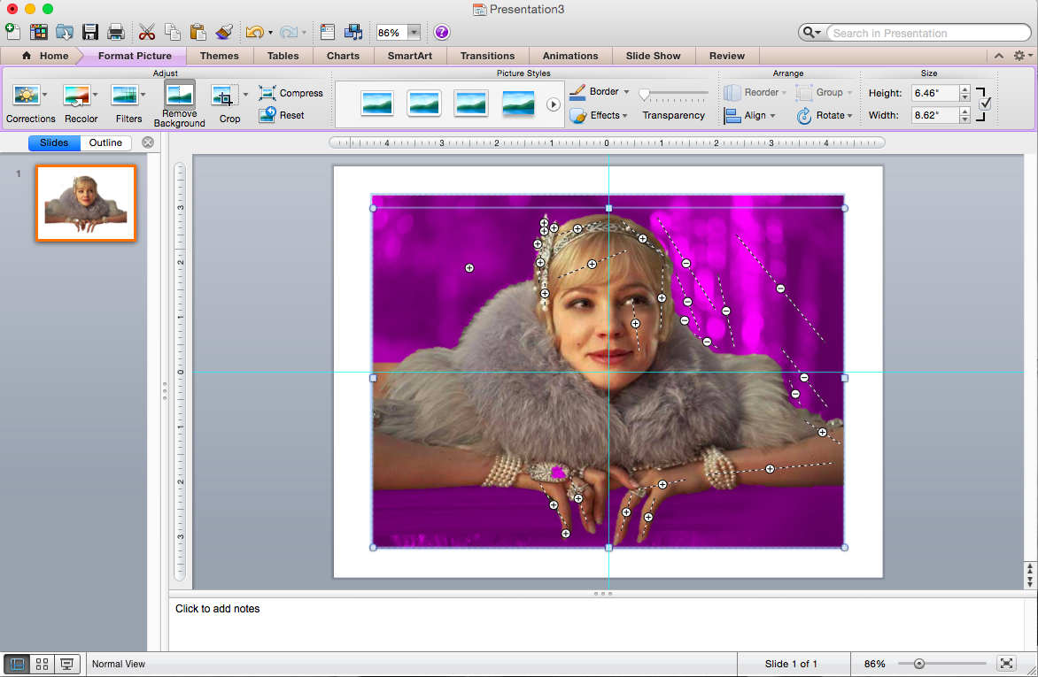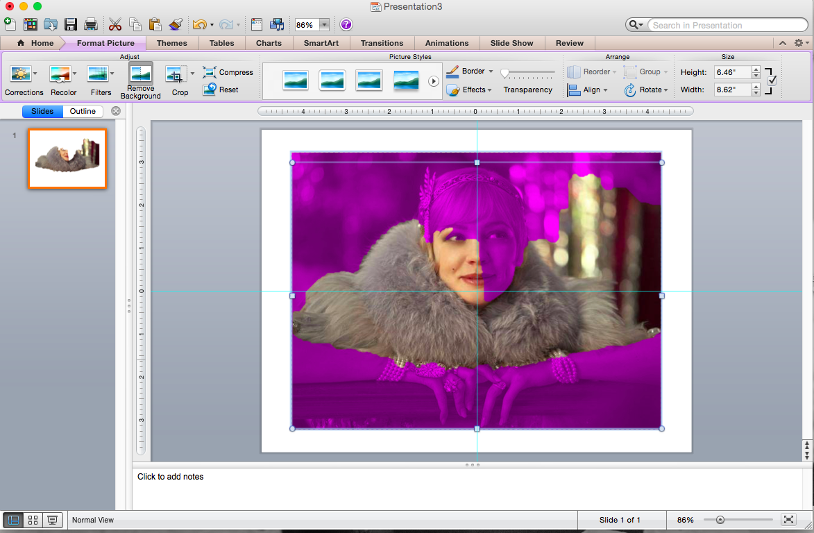 Remember, I chose a really elaborate picture to demonstrate with. I’ve also had instances where Powerpoint did all the work for me and I was able to isolate with just a quick click of the icon.