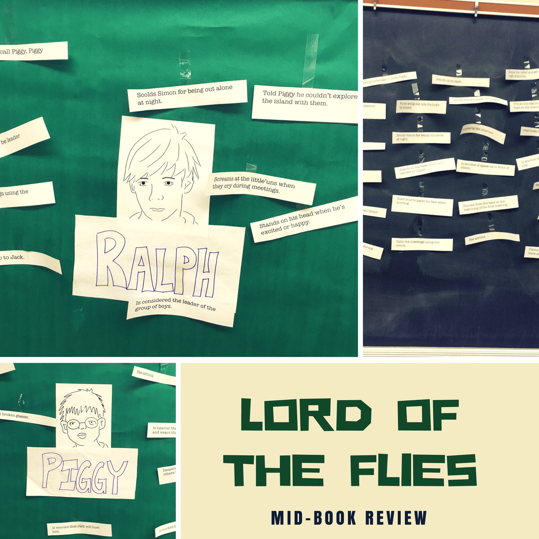 I go into Word and select a large font of at least 24. Then I type out different actions and characteristics of the main characters. For The Lord of the Flies, I included Piggy’s glasses being broken, Jack smearing pig’s blood on his face, and Simon helping the little’uns get fruit from the tall branches.