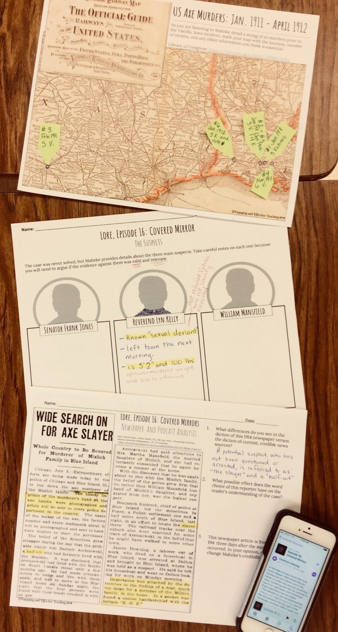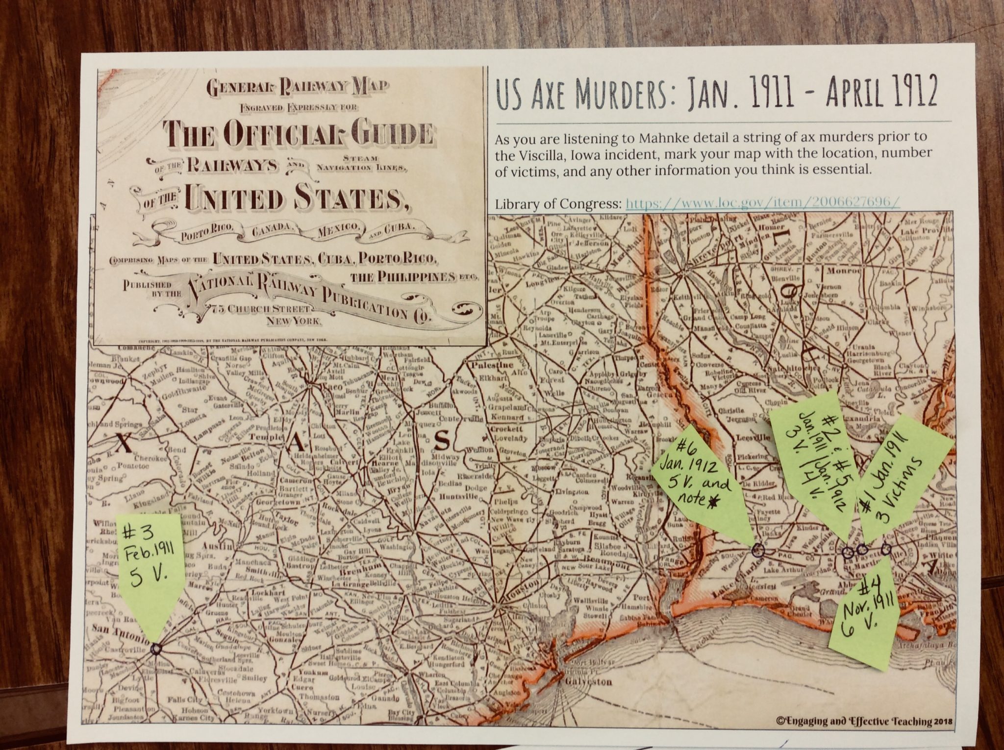 The podcast itself is high interest and very well done. And, thanks to the Library of Congress I can also include actual newspaper articles and maps linked to the events. I have students marking and analyzing a train map to check for patterns and consistencies.