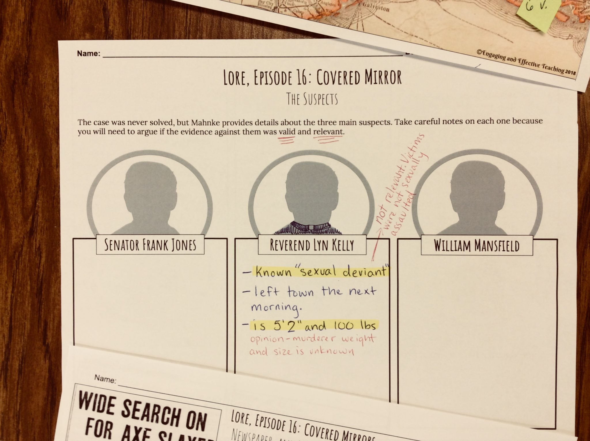 When I use all of the ideas listed above, this lesson takes a week of 52 minute classes. My students do a thorough analysis and need to listen to the podcast a few times to get all of the information they need. But really, they don’t mind. It’s that good of a story.